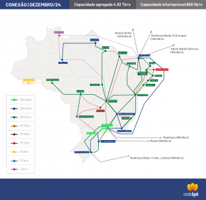 dá por meio de 5 links de 10 gigabits por
